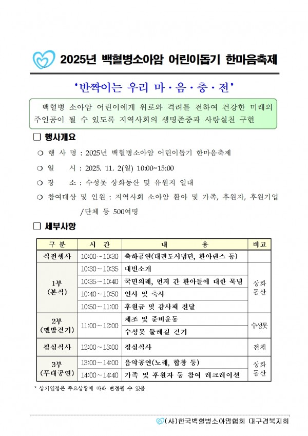 2025년 백혈병소아암 어린이돕기 한마음축제